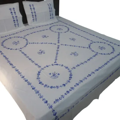 Bidding Work Embroidered Double Bed sheet with 2 pillow covers, size 90*108 inch, Pure cotton fabric, free shipping within India
