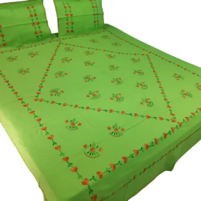 Hand Embroidered Double Bedsheet with 2 pillow covers, size 90*106 inch, Pure cotton fabric, free shipping within India