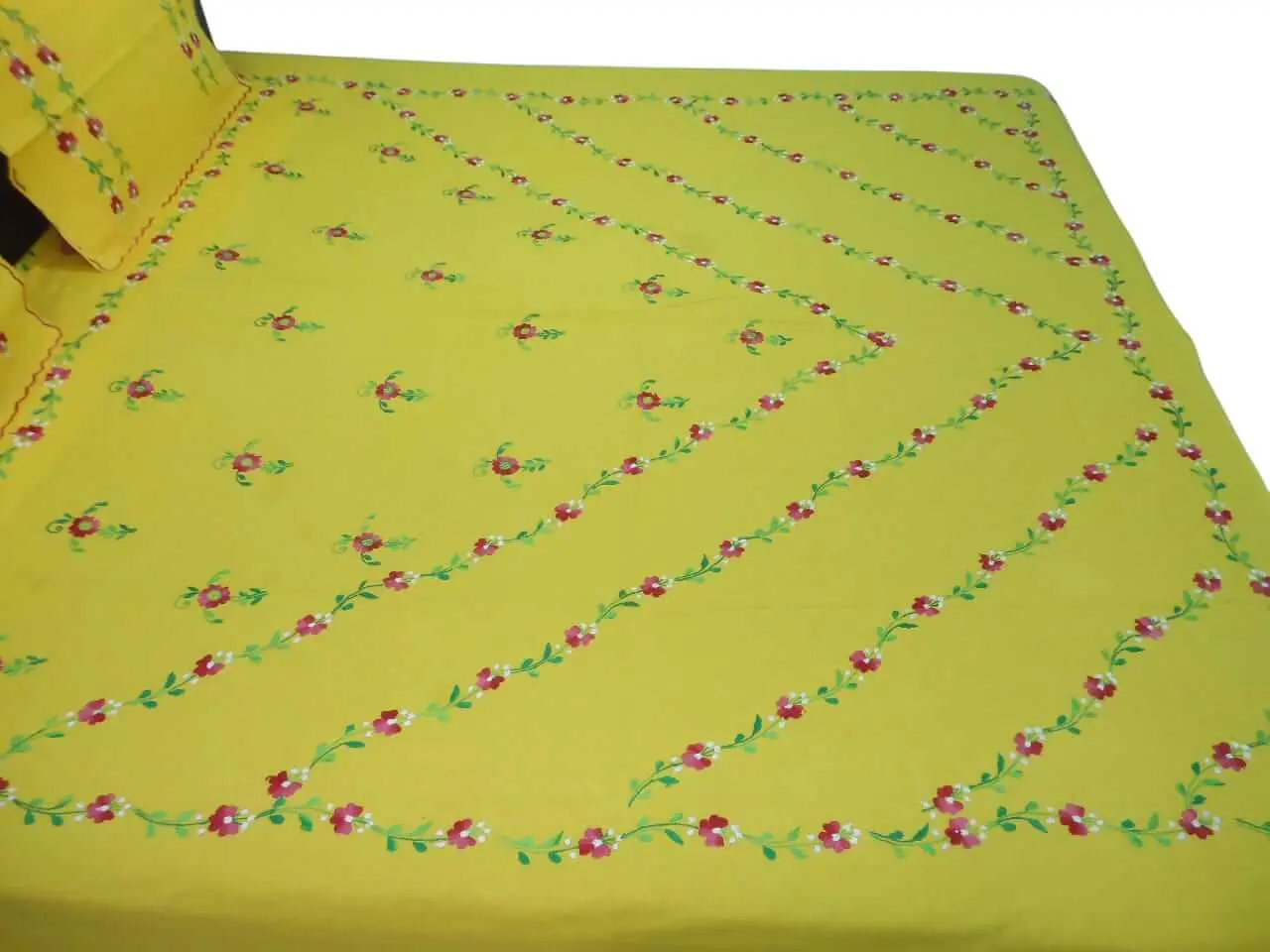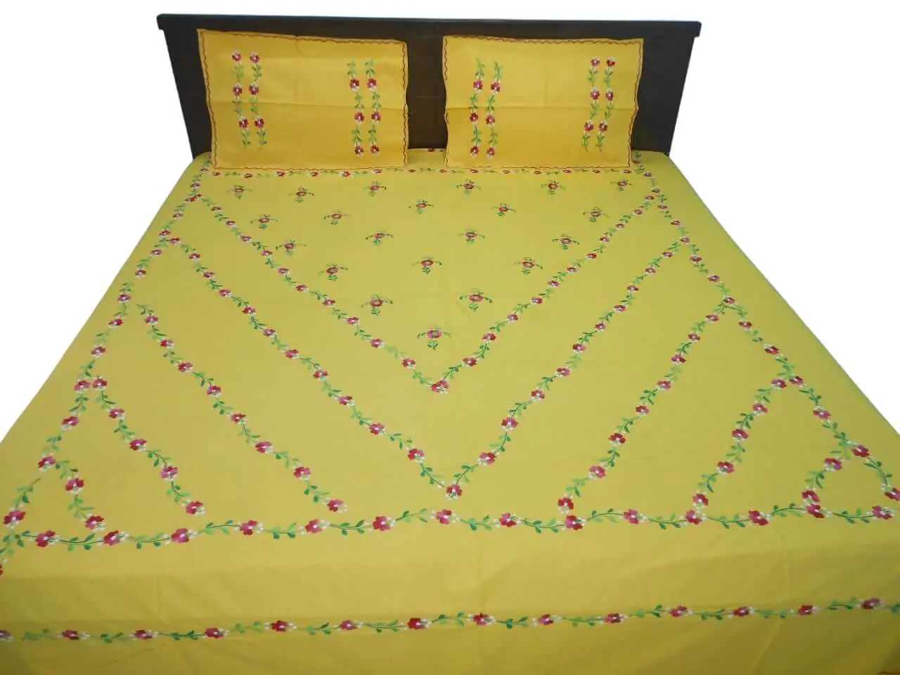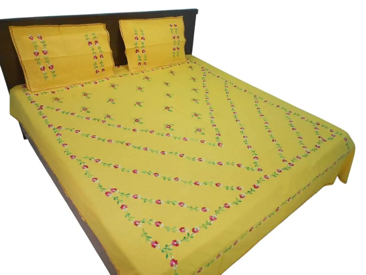 Hand Embroidered Double Bedsheet with 2 pillow covers, size 90*106 inch, Pure cotton fabric, free shipping within India